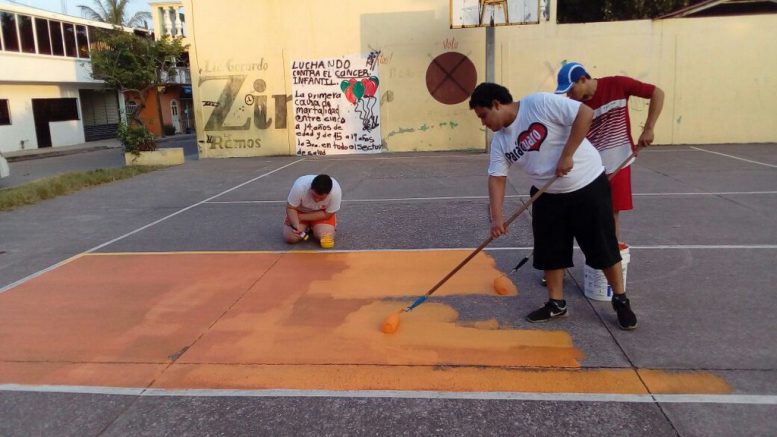 Se pintaron las líneas que marcan los perímetros de la zona de la cancha, además de realizar una limpieza general al área recreativa.