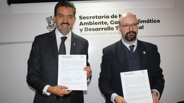 Morelia, Michoacán.- Al existir intereses y objetivos en materia de medio ambiente y desarrollo territorial y con la finalidad de establecer mecanismos de coordinación institucional para llevar a cabo acciones conjuntas entre la Universidad Latina de América (UNLA) y la Secretaría de Medio Ambiente, Cambio Climático y Desarrollo Territorial (Semaccdet), este día se firmó el convenio de colaboración entre ambas instituciones.