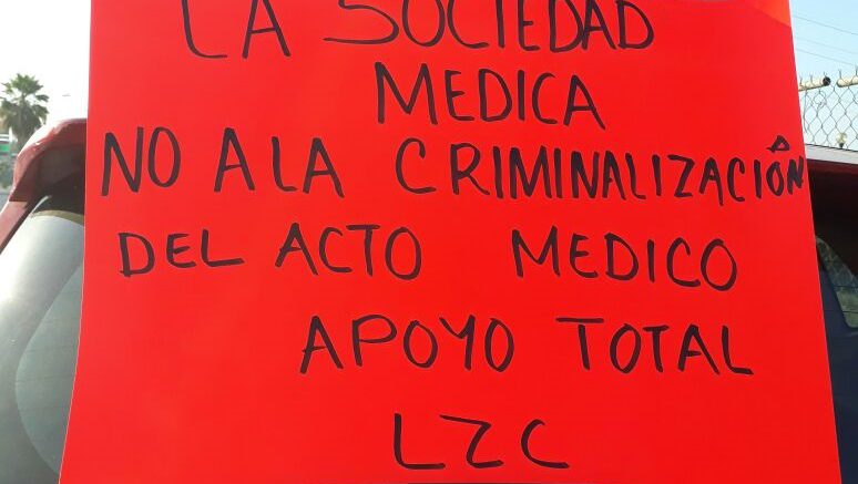 Apenas el domingo anterior realizaron una pequeña manifestación como lo hicieran en 70 ciudades del país en apoyo solidario a su colega Luis Alberto Pérez Méndez, que en Oaxaca es acusado de homicidio simple con agravante de negligencia médica.