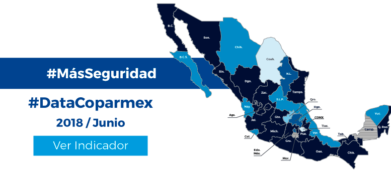 La plataforma Data Coparmex conjunta 10 indicadores estatales en los cuales se da seguimiento a los temas de mayor relevancia pública y económica de México, como corrupción, y en ellas se da proceso a datos oficiales y consultas a socios del organismo.