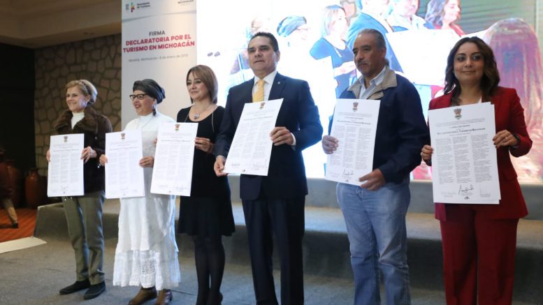 Morelia, Michoacán.- Ante los recortes presupuestales del Gobierno Federal para el apoyo a la promoción del turismo, el Gobernador, Silvano Aureoles Conejo, y la secretaria de Turismo, Claudia Chávez López, firmaron la Declaratoria por el Turismo de Michoacán, la cual tiene la firme visión de apoyar la conservación, recuperación y promoción de nuestro patrimonio natural y cultural, tangible e intangible del estado.