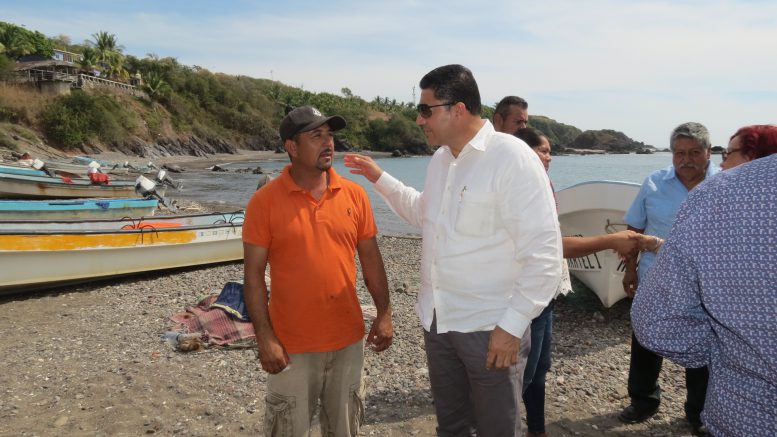 El presidente de la Comisión de Recursos Hidráulicos, Agua Potable y Saneamiento del Congreso de la Unión, en primera instancia se reunió con pescadores de Carrizalillo, comunidad perteneciente a la tenencia de Caleta de Campos.