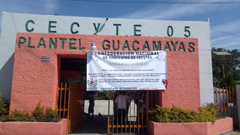 Lázaro Cárdenas, Michoacán.- Los planteles y extensiones del subsistema de Colegios de Estudios Tecnológicos del Estado continúan en paro de labores a nivel país, en protesta al recorte de presupuesto a la educación por el gobierno de Andrés Manuel López Obrador.