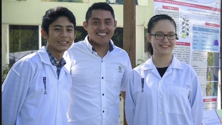 Los jóvenes yucatecos de 15 años de edad fueron asesorados por el técnico del Laboratorio GeMBio del CICY, Biól. Jorge Alberto Cauich Rejón, y representaron a México con el proyecto “Las plantas también se enferman”. Con este proyecto demostraron su conocimiento acerca de los patógenos que afectan a las plantas y las consecuencias que tienen en ellas.