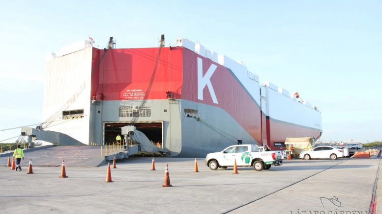 Lázaro Cárdenas, Michoacán.- El buque carrero Niagara Highway de la línea KLine arribó al Puerto Lázaro Cárdenas; proveniente de Japón. Atracó en la Terminal Especializada de Autos (TEA) de este recinto portuario movilizando 167 unidades de importación de Suzuki y 199 unidades de transbordos a cargo de la agencia Mexhispping.