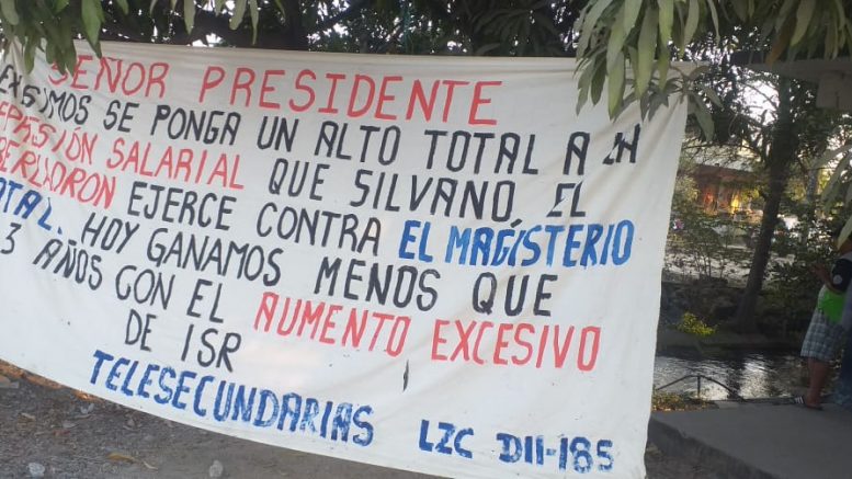 Lázaro Cárdenas, Michoacán.- Demandando pagos de bonos y aguinaldo, así como regreso de impuestos, miembros de la Coordinadora Nacional de Trabajadores de la Educación (CNTE) tomaron esta mañana las vías del ferrocarril en Las Guacamayas, en este municipio.