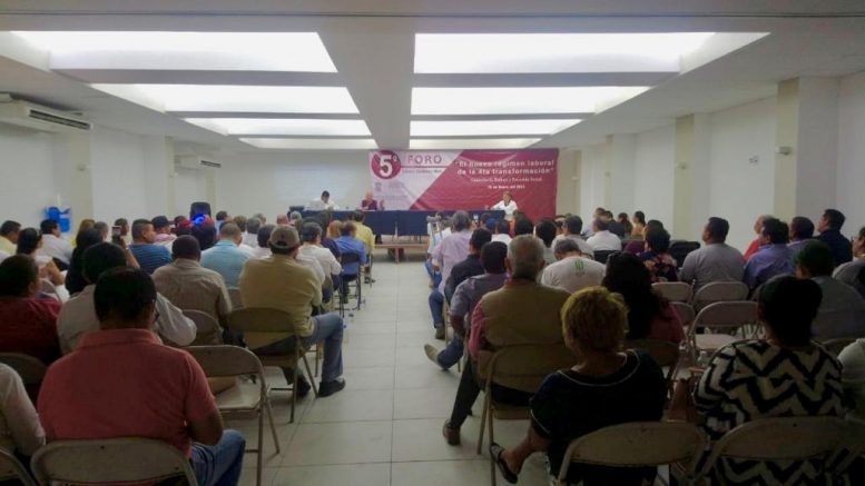 En parte de su conferencia, el director de capacitación de la STPS, dijo que la ley laboral garantiza al trabajador su derecho de pertenecer o no a un sindicato. También explicó que en una empresa puede haber más de un sindicato.