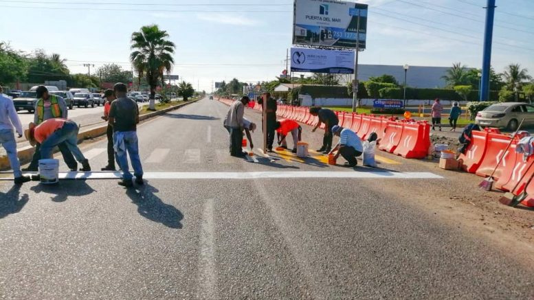 Lázaro Cárdenas, Michoacán.- En el marco de los trabajos por la construcción del distribuidor vial, el Gobierno Municipal de Lázaro Cárdenas, por medio de la Secretaría de Obras Públicas Municipales, realizaron el balizamiento de la avenida Las Palmas.