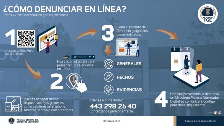 Lázaro Cárdenas, Michoacán.- Aunque la Fiscalía Regional de Lázaro Cárdenas mantiene sus puertas abiertas y sus servicios disponibles, se ha puesto al servicio de la población, aprovechando las tecnologías, una plataforma para denunciar en línea, informó el Dr. Mario Alberto García Herrera.