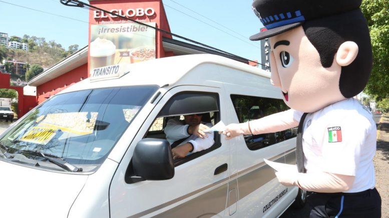 Este lunes, elementos de Tránsito y Movilidad, en compañía con el comandante “Bob” (botarga de la Unidad de Peritos), efectuó la entrega de trípticos informativos, guantes desechables y cubrebocas a transportistas y conductores.