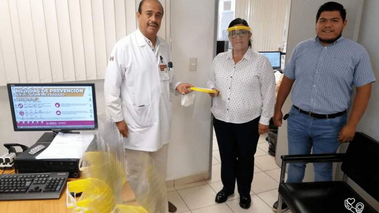 Las instituciones a las que se entregaron las 100 caretas son: Centro de Salud No. 581, Clínica Hospital Ricardo Flores Magón del ISSSTE, Cruz Roja, Protección Civil Municipal, Hospital Regional y la UMF No. 12 del IMSS.