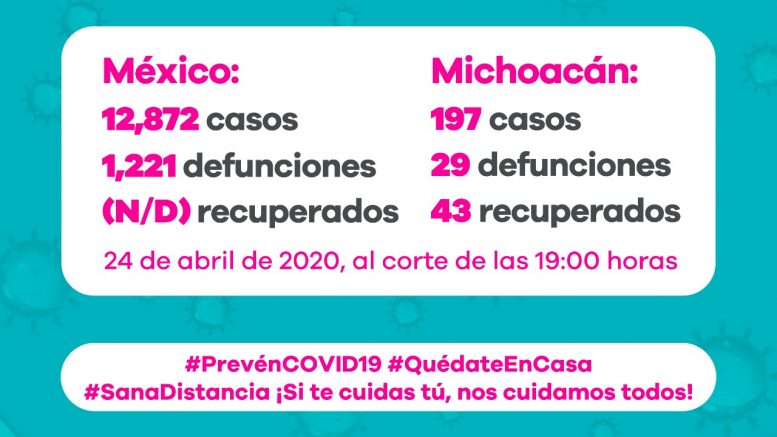 Los reportes de la Secretaría de Salud estatal, refieren que hasta este 24 de abril la entidad presentaba un total de 197, con 29 decesos y 25 hospitalizados, 13 de ellos graves.