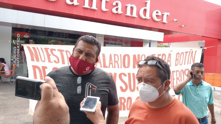 “No sabemos de cuánto es el moche del banco al gobierno de Silvano, que a la fuerza nos quiere tarjetizar”, señaló en el punto de manifestación Roberto Equihua, vocero de quienes tomaron la sede bancaria.