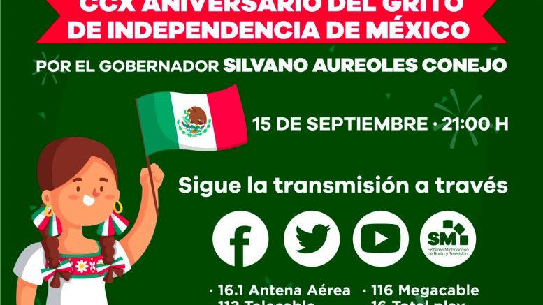 Será en punto de las 21:00 horas cuando el Gobernador de Michoacán, Silvano Aureoles Conejo, dé inicio al acto que conmemora el CCX Aniversario de nuestra Independencia, que por primera vez se realizará de manera virtual por la emergencia sanitaria que prevalece en el país.
