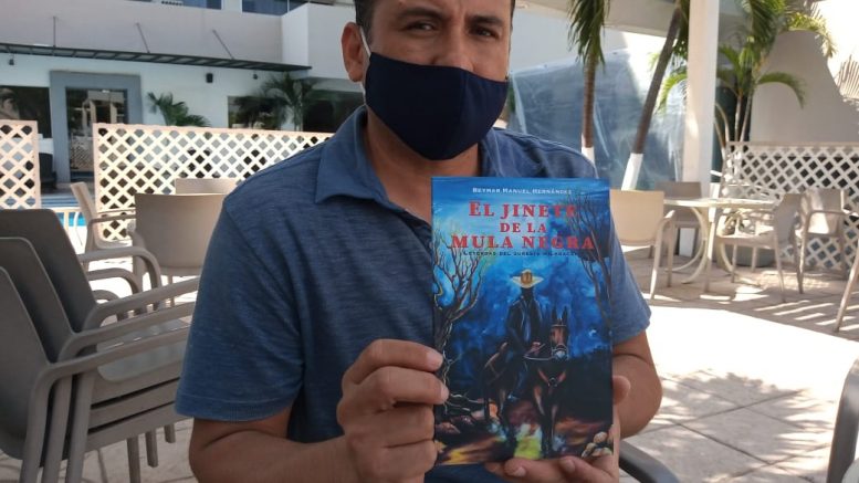 Lázaro Cárdenas, Michoacán.- “El jinete de la mula negra” es un libro que aborda el pensamiento mágico de las sociedades rurales del sureste michoacano del siglo XX a través de las leyendas, anota el profesor Beymar Manuel Hernández, con su obra entre las manos.