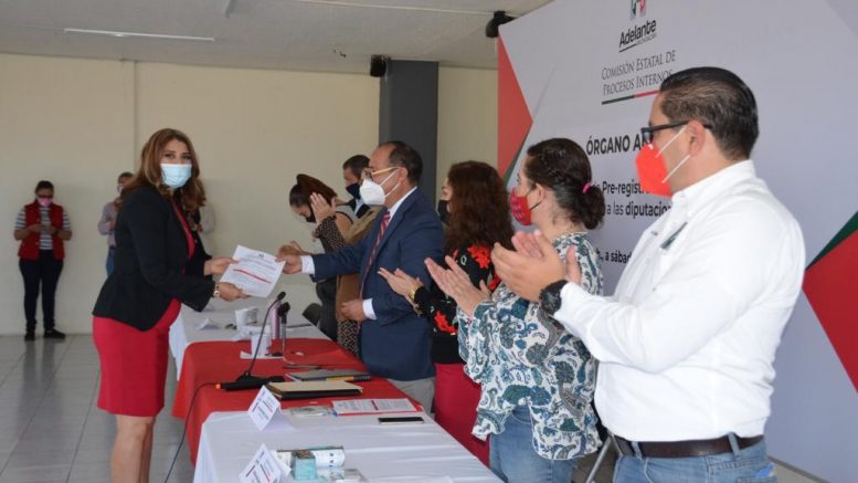 Ante la presencia de miembros de la Comisión Estatal de Procesos Internos del PRI, su presidente, Isrrael Abraham López Calderón recibió la documentación de Isabel Sánchez Galván, Adriana Campos Huirache, Eduardo Orihuela Estefan e Irma Vargas Morales.