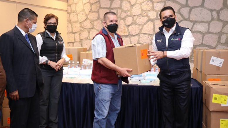 Al hacer la entrega de 20 mil caretas, 12 mil cubrebocas y 3 mil litros de gel antibacterial a los operadores del transporte, Aureoles Conejo reiteró la voluntad de su Gobierno para seguir escuchando, apoyando y ofrecer información a los transportistas.
