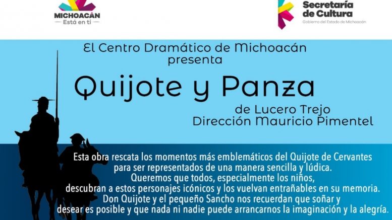 Lázaro Cárdenas, Michoacán.- Gracias a Centro Dramático de Michoacán, Clan Teatro está compartiendo funciones de la obra “Quijote y Panza”, vía zoom, dirigida por Mauricio Pimentel y escrita por Lucero Trejo.