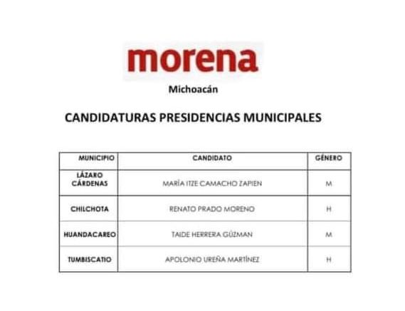 Lázaro Cárdenas, Michoacán.- La alcaldesa María Itzé Camacho, fue elegida por la Comisión Nacional de Elecciones de Morena, así que tratará de reelegirse en el cargo, para lo cual irá con esa marca a las elecciones del 6 de junio.