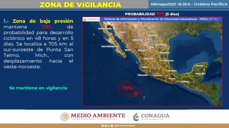 El evento ciclónico se formó frente a las costas de Michoacán, de acuerdo a los datos difundidos por la Comisión Nacional de Aguas (Conagua).