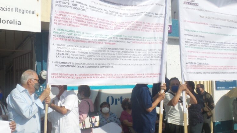 Morelia, Michoacán.- Trabajadores pensionados y jubilados del extinto Banrural, en voz de su presidente Mario Beltrán Pacheco, denunciaron un mega fraude por el orden de los mil 600 millones de pesos a nivel nacional en complicidad con funcionarios de Nacional Financiera, quienes se prestaron al establecer un nuevo mecanismo en las licitaciones 2021 del servicio médico del FOPESIBAN (Fideicomiso del Fondo de Pensiones del Sistema Banrural que se estableció por una vigencia de 50 años desde el 2003 al año 2053).