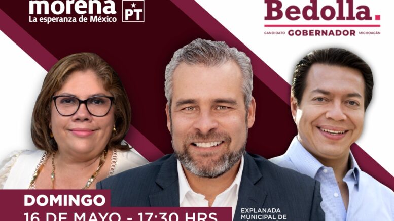 La aspirante de Morena, agregó que vendrá el dirigente nacional de ese partido, Mario Delgado; el candidato a la Diputación Federal por el Distrito 01, Doctor Leonel Godoy Rangel, y otras figuras.