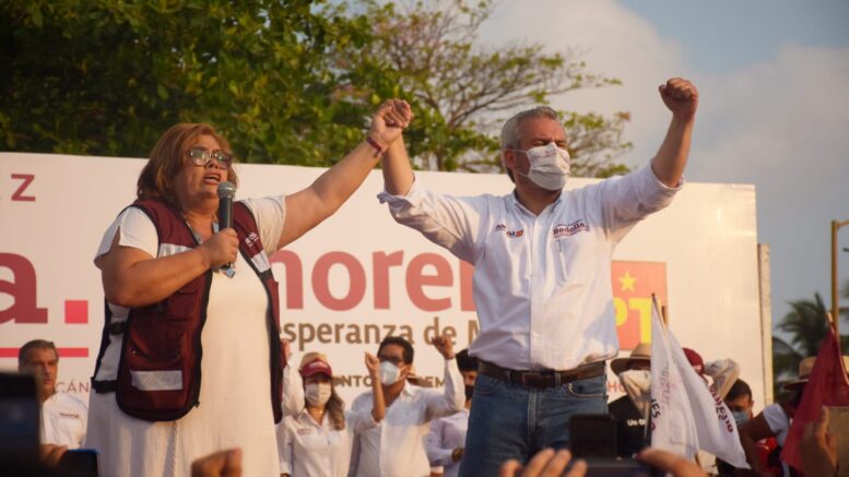 Lázaro Cárdenas, Michoacán.- Durante su participación en el mitin en apoyo a los candidatos de Morena en este municipio, la candidata a la diputación local, Julieta García Zepeda, dijo que ante la respuesta de la sociedad, en Lázaro Cárdenas nadie ni nada detiene la cuarta transformación.