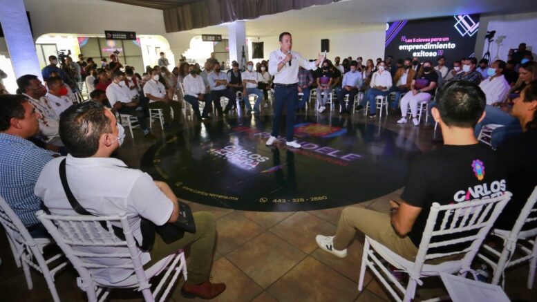 El candidato del Equipo por Michoacán participó como ponente en el foro “Empréndele” con el tema “Cinco claves para un emprendimiento exitoso”, bosquejó una agenda de emprendimiento en su proyecto de gobierno y, para ello, selló cinco compromisos para la juventud.