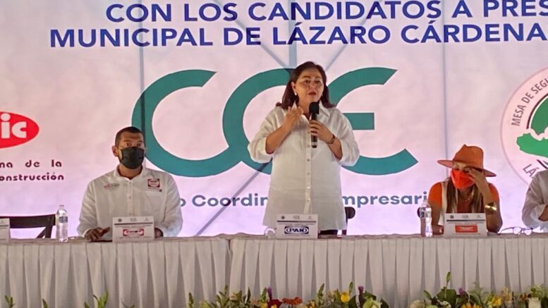 Lázaro Cárdenas, Michoacán.- De frente y de forma clara, Silvia Estrada Esquivel, candidata del Partido Acción Nacional (PAN) a la alcaldía de Lázaro Cárdenas, demostró estar lista para ganar la elección del próximo 06 de junio, al presentar las mejores propuestas para el municipio, en el Foro Empresarial con los Candidatos a la Presidencia Municipal de Lázaro Cárdenas.