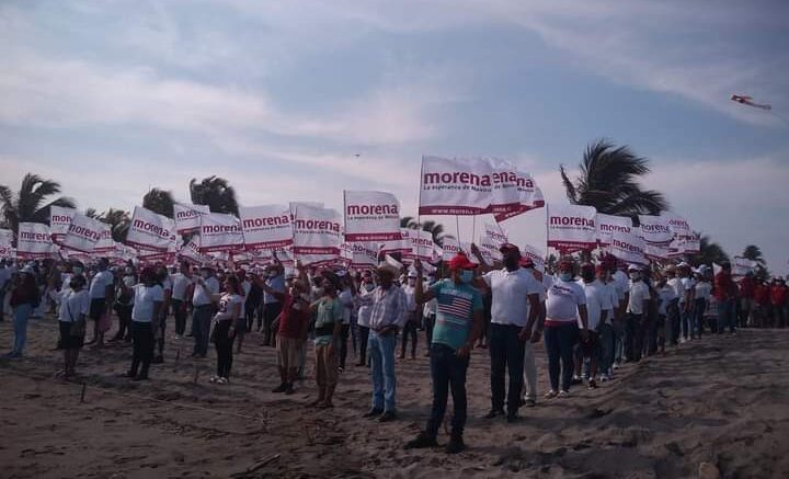 Lázaro Cárdenas, Michoacán.- En Playa Tortuga, se realizó el cierre de campaña de los candidatos de Morena en Lázaro Cárdenas, evento al que asistieron más 2,500 personas que conforman la estructura de trabajo del partido en esta contienda electoral, de acuerdo a números de los organizadores.