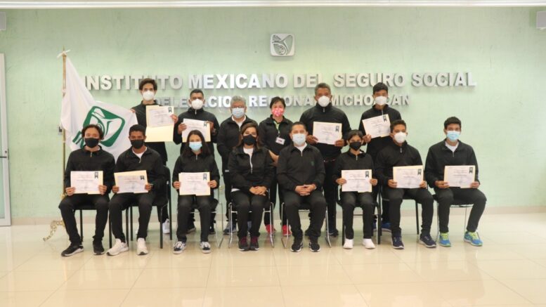 Los nueve jóvenes socio-alumnos, junto con sus entrenadores y padres de familia se reunieron con la titular del IMSS en Michoacán, Ma. Luisa Rodea Pimentel, y el titular de la jefatura de salud en el trabajo, prestaciones económicas y sociales, Héctor Vargas Ortiz.