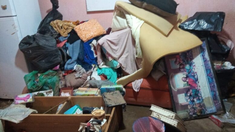 “Hoy son chatarra, es lo que nos servía para dormir (colchones), lavar ropa (lavadora) y tener algo en casa”, dice una de las personas afectadas, mientras señala a un montón de escombros que usan para desviar el agua.