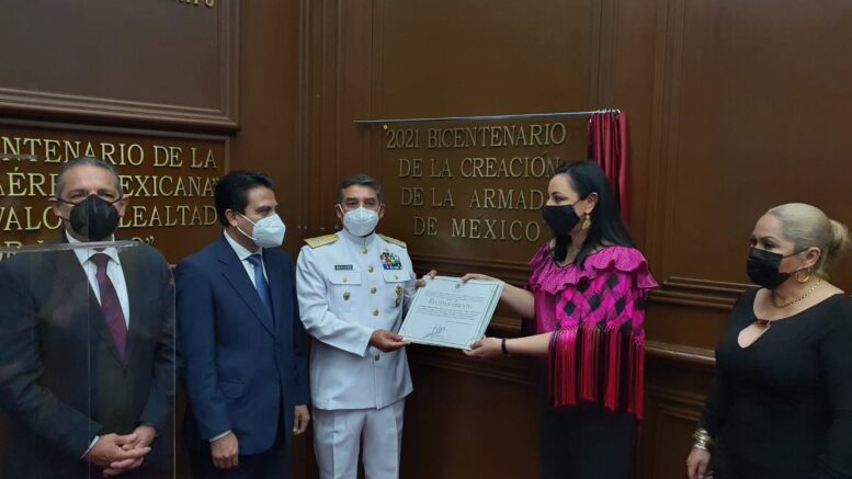 Lázaro Cárdenas, Michoacán. – En el marco de la celebración del Bicentenario de la Creación de la Armada de México, en Sesión Solemne, fue inscrita con letras doradas la leyenda “2021 Bicentenario de la Creación de la Armada de México”, en el frontispicio del Honorable Congreso del Estado de Michoacán.