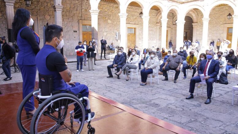 Samuel Efrén Molina Núñez y Fabiola Loza Tenorio recibieron del mandatario el Premio Estatal del Deporte 2021, en la modalidad de Tiro con Arco paralímpico, tras representar al estado y al país en los juegos Paralímpicos de Tokio, Japón.