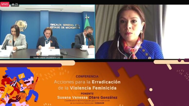 Durante su participación, la Coordinadora de Articulación para la Erradicación de la Violencia Feminicida de la Comisión Nacional para Prevenir y Erradicar la Violencia contra las Mujeres (CONAVIM), Susana Vanessa Otero González, informó que, en el país, actualmente se cuenta con 22 entidades con Declaratoria de Violencia de Genero, y explicó que se han emitido 25 Alertas en 757 municipios, de los cuales 14 pertenecen a Michoacán.