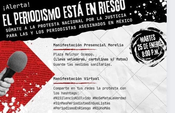 Además, los periodistas de todo el país suscribieron un documento que se entregará a las autoridades federales, a la par de otra protesta virtual, usando los hashtags: #NiSilecioNiOlvido, #NoSeMataLaVerdad, #SinMasPeriodistasEnSusListas y #PeriodismoEnRiesgo