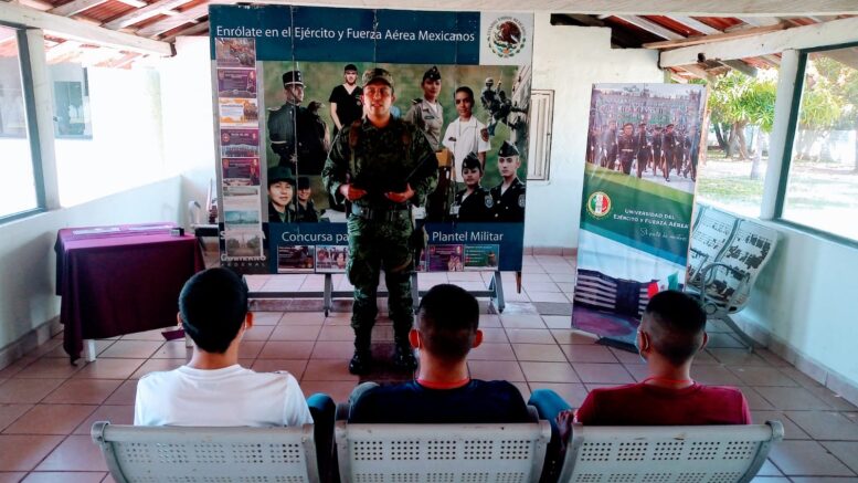El Subteniente Jesús Aarón Jaime López, fue encargado de hablar de jóvenes sobre la convocatoria 2022 de la Sedena, que oferta ingenierías y licenciatura en sus diferentes planteles.