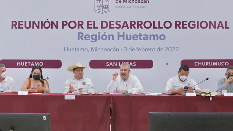 Huetamo, Michoacán.- Al concluir las reuniones regionales por el desarrollo de los municipios, el gobernador Alfredo Ramírez Bedolla afirmó que la entidad tiene las condiciones políticas y sociales para mantener la gobernabilidad que requieren los michoacanos.