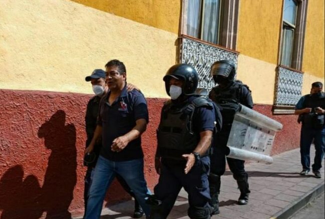 En el enfrentamiento, registrado este lunes en el Centro Histórico de Morelia, el líder de los docentes y al menos dos personas más fueron detenidos, junto a Palacio de Gobierno, por agentes de la Unidad de Restablecimiento del Orden Público (UROP).