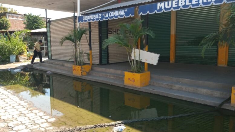 De las alcantarillas brotan aguas pestilentes que se encharcan en las vialidades haciendo lagunas verdosas y malolientes, de donde los vehículos dispersan una parte y otra se evapora.