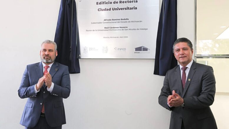 En el acto de inauguración del nuevo edificio de Rectoría, el mandatario afirmó que en el proceso de modernización de la Máxima Casa de Estudios, la administración a su cargo tiene la firme convicción de respaldar la ampliación y funcionalidad de los espacios nicolaitas, al reiterar que en sus aulas se forjan a los profesionistas que coadyuvarán al desarrollo social y económico del estado y del país.