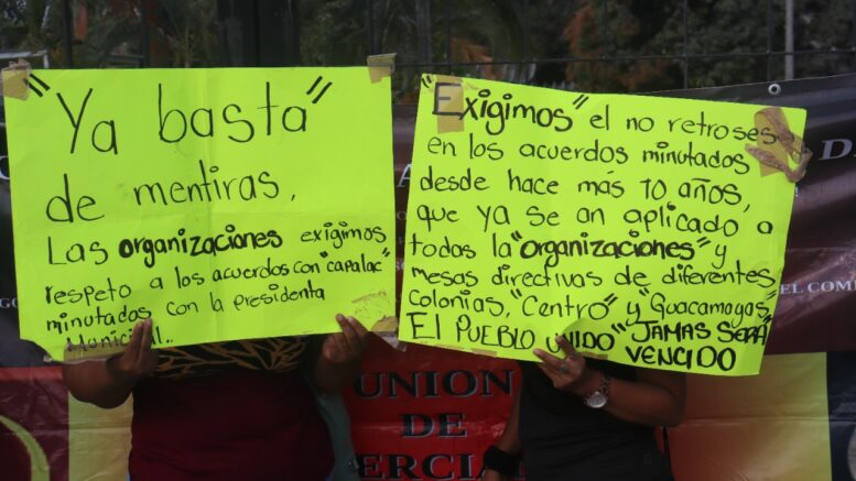 Miguel Marcial Santos, dirigente del Frente Popular Revolucionario, dijo que a toda costa el síndico Manuel Esquivel Bejarano, ha pretendido coartar su movilización, exigiéndoles que se comprometan a ya no hacer ninguna manifestación en contra del gobierno municipal, para que él pueda entregar al Capalac la minuta de acuerdos firmada en marzo pasado por la alcaldesa Itzé Camacho.
