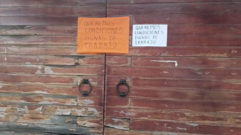 El paro de actividades laborales inició ayer en demandas de seguridad laboral, ya que el inmueble, localizado junto a las oficinas del sindicato minero, no tiene agua y días atrás no tenía servicios sanitarios en una parte.