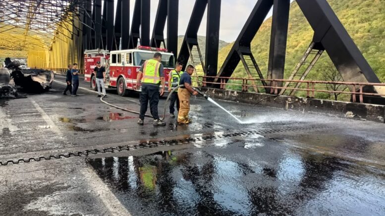 Lázaro Cárdenas, Michoacán.- Luego del accidente se esta mañana de miércoles en la vía carretera Siglo XXI, en que se incendió un tractocamión junto a la estructura del Puente Infiernillo, la Secretaría de Infraestructura, Comunicaciones y Transportes –SICT–, tomó la decisión de cerrar el tramo que comunica al Puerto de Lázaro Cárdenas.