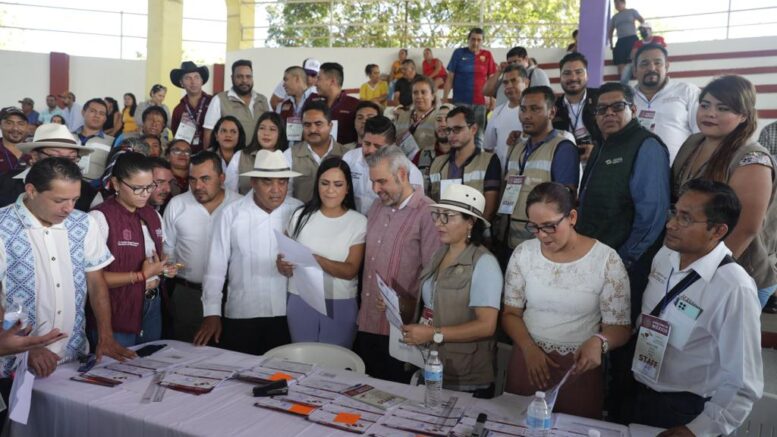 Coahuayana, Michoacán.- La secretaria de Bienestar, Ariadna Montiel Reyes, y el gobernador de Michoacán, Alfredo Ramírez Bedolla, iniciaron la entrega de apoyos económicos del Programa para el Bienestar de las Personas en Emergencia Social o Natural (PESN) en el municipio de Coahuayana, a los afectados por el sismo del pasado 19 de septiembre, a fin de que recuperen sus bienes materiales y su calidad de vida.
