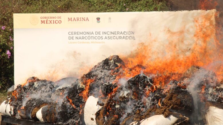 Lázaro Cárdenas, Michoacán.- La Secretaría de Marina, a través de la Armada de México, por medio de la Décima Cuarta Zona Naval, con sede en este Puerto Lázaro Cárdenas, informa que personal naval en coordinación con la Fiscalía General de la República (FGR), incineró sustancias sicotrópicas.