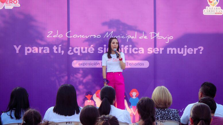 Lázaro Cárdenas, Michoacán.- Conmemorando el Día Internacional de la Mujer, la regidora Verónica Gómez de la Rosa, realizó en la pérgola municipal evento en el cual se expusieron los trabajos del concurso de dibujo “Y para ti, ¿qué significa ser mujer?”, del que se premió a las jóvenes que participaron, en medio de charlas impartidas por especialistas en temas de género.