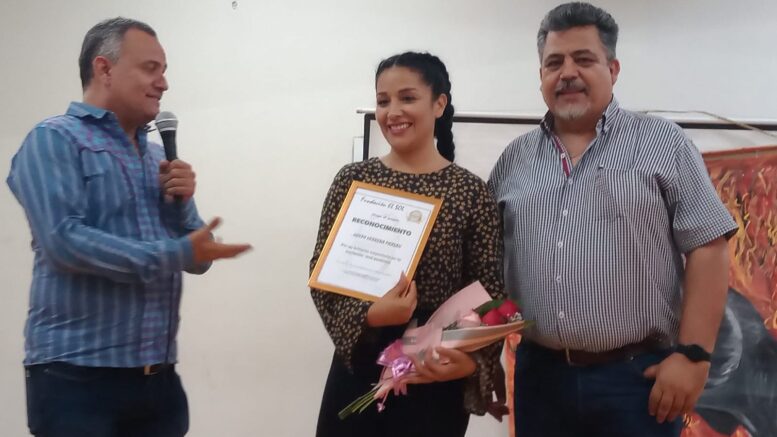 En este marco, la narradora Noemí Merlán recibió un reconocimiento por parte de la Fundación El Sol de Colombia, Embajada en México, que le fue entregado por el director de Cecytem 05, Ing. Andrés Luna Baldo.