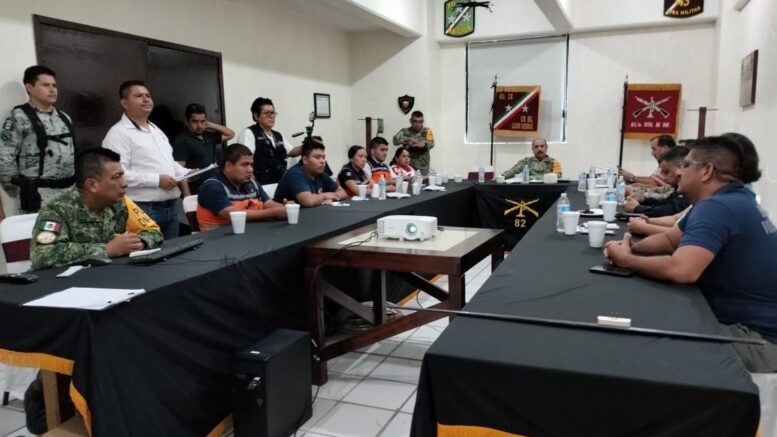 Lázaro Cárdenas, Michoacán.- Ante las tormentas tropicales Lidia y Max, que afectan a la región Pacífico, el grupo operativo del consejo municipal de Protección Civil de esta plaza, presidida por el General Brigadier Diplomado de Estado Mayor Ignacio García Brito, Comandante de la Guarnición Militar de Lázaro Cárdenas, acordó acciones.