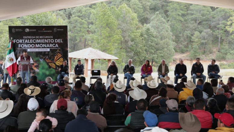 Senguio, Michoacán.- El gobierno de Michoacán entregó un millón de dólares para el Fondo de la Mariposa Monarca, el cual se destina para el pago de servicios ambientales, dueños y poseedores del bosque, ejidatarios y para los pequeños propietarios de 33 ejidos, comunidades indígenas y propiedades ubicados en las 13 mil 500 hectáreas de la zona núcleo de esta reserva natural.